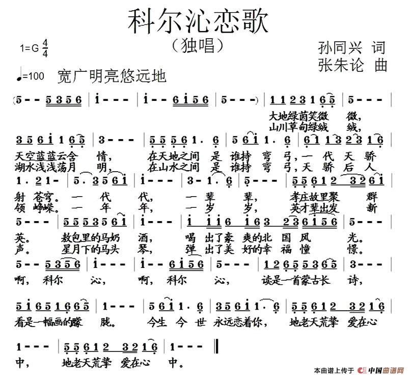 关于《科尔沁恋歌》曲谱的评论