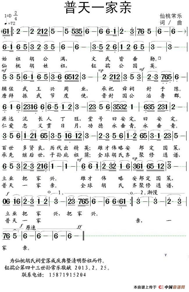 关于《普天一家亲》曲谱的评论