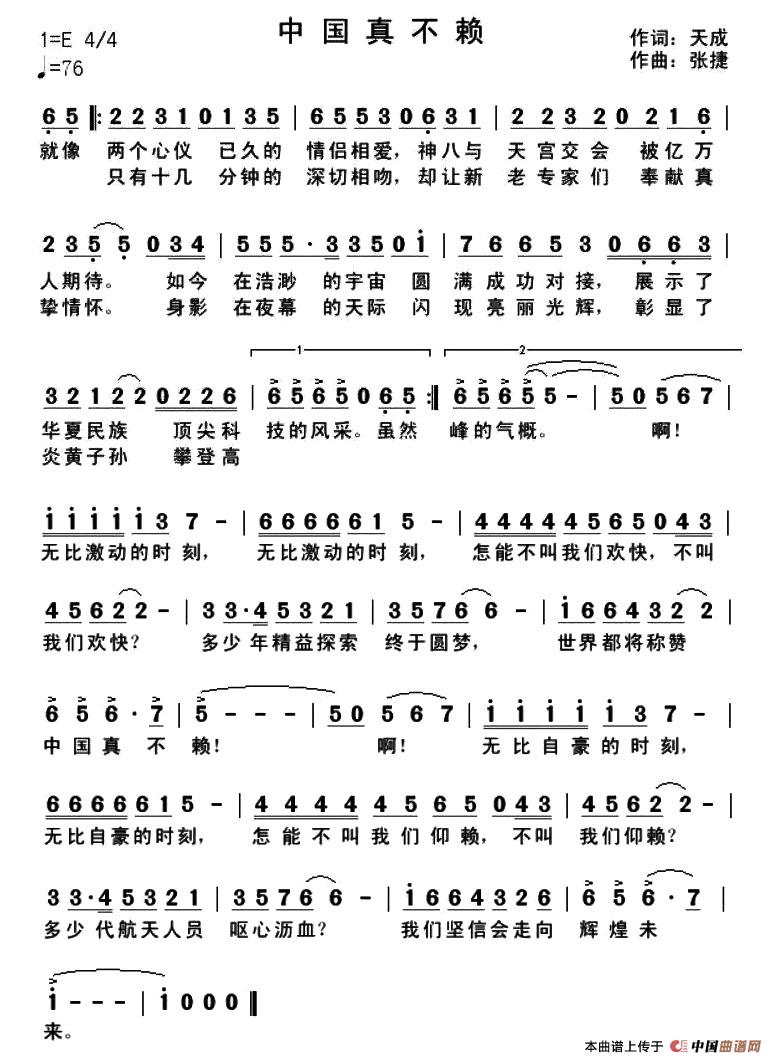 关于《中国真不赖》曲谱的评论