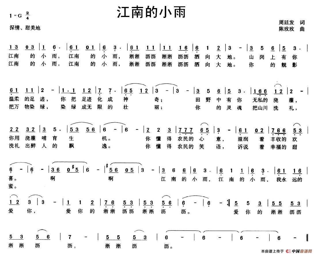关于《江南的小雨》曲谱的评论