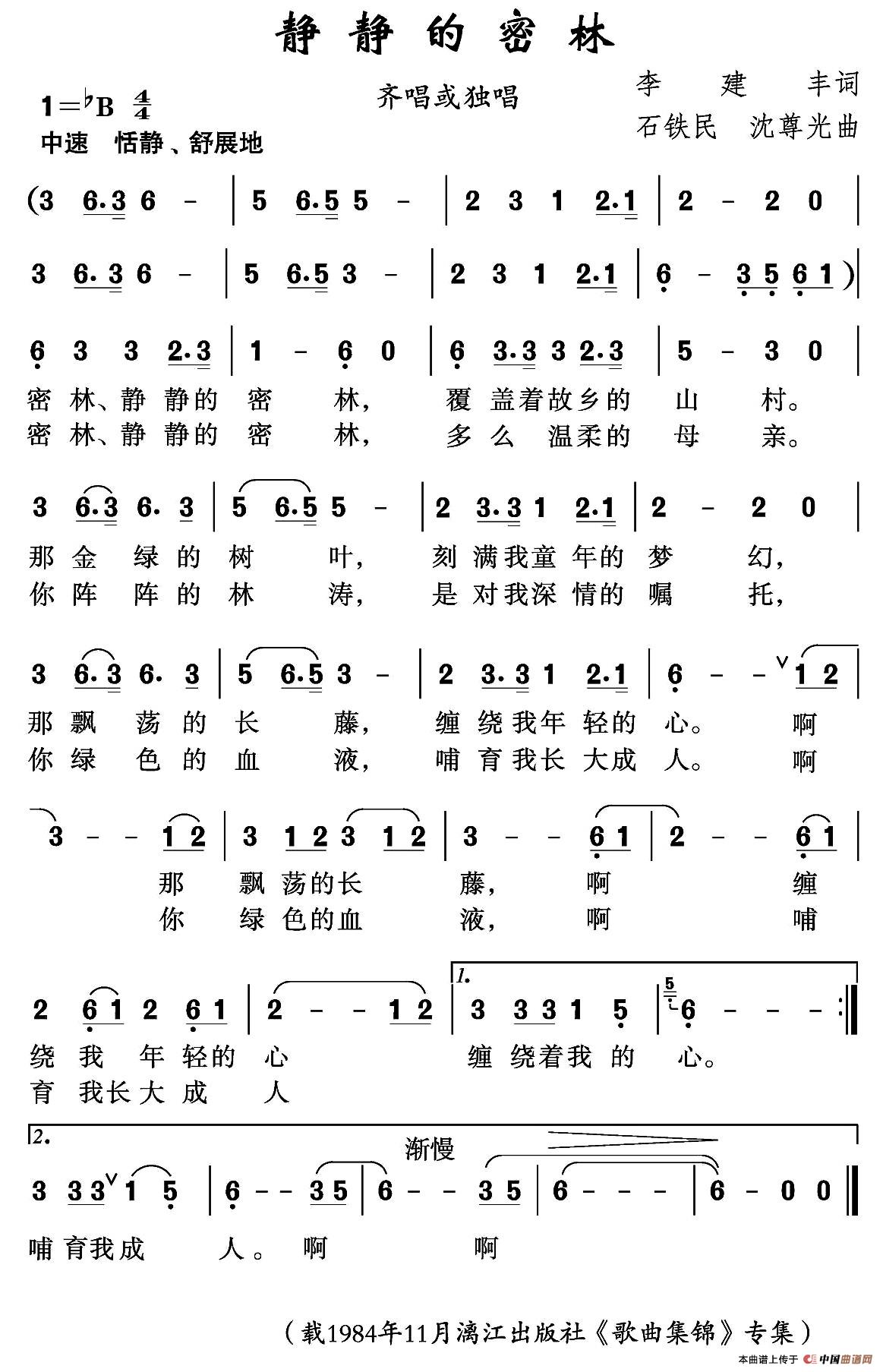 静静的密林(李建丰词 石铁民 沈尊光曲)