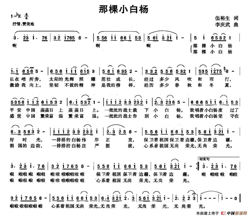 关于《那棵小白杨》曲谱的评论