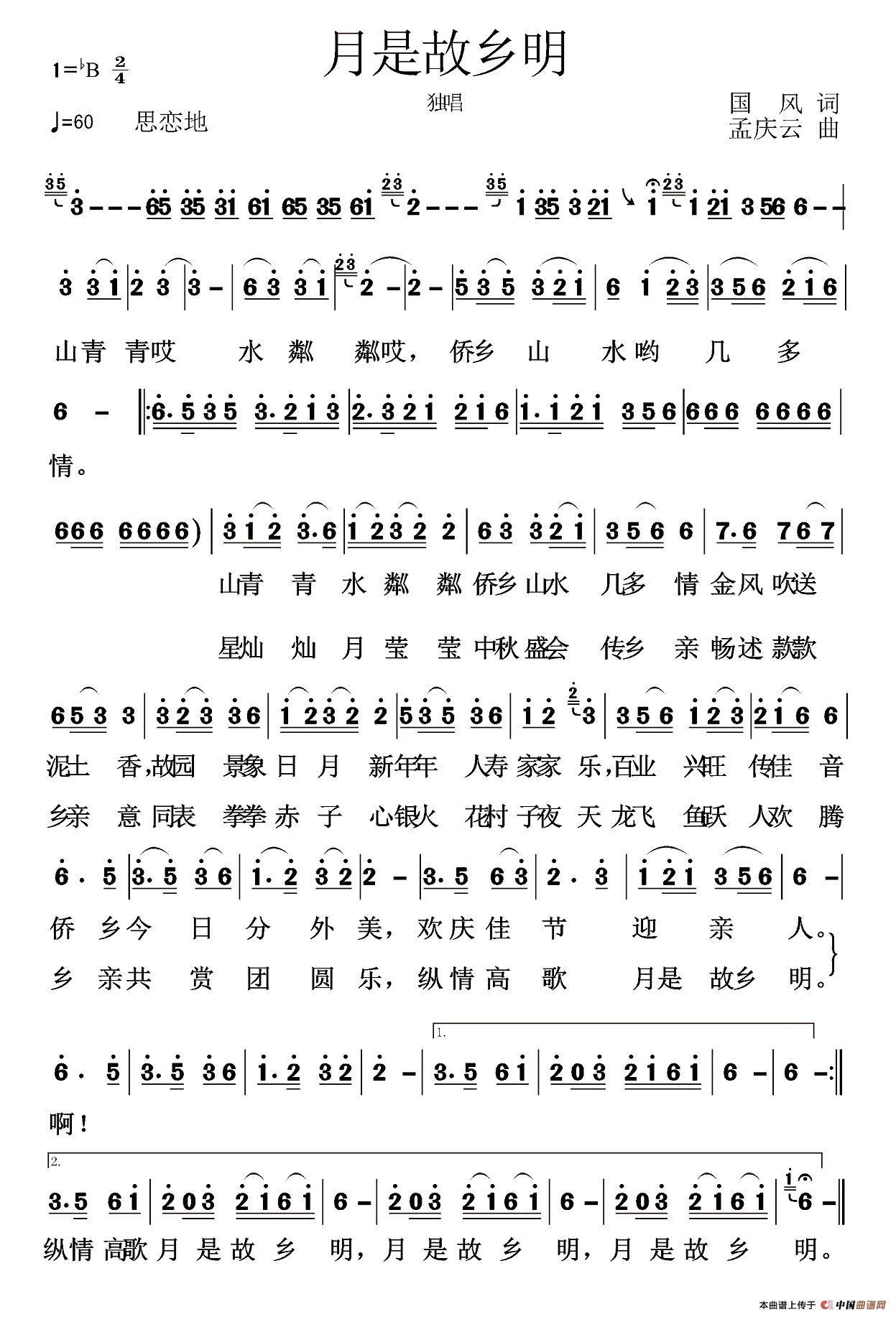当前位置: 首页 民歌曲谱 五字歌名 月是故乡明(国风词 孟庆云曲)