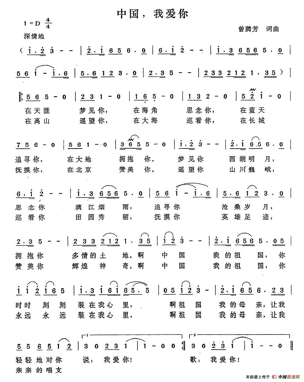 关于《中国,我爱你》曲谱的评论