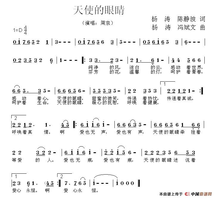 天使的眼睛(杨涛 陈静波 词 杨涛冯 斌文曲)