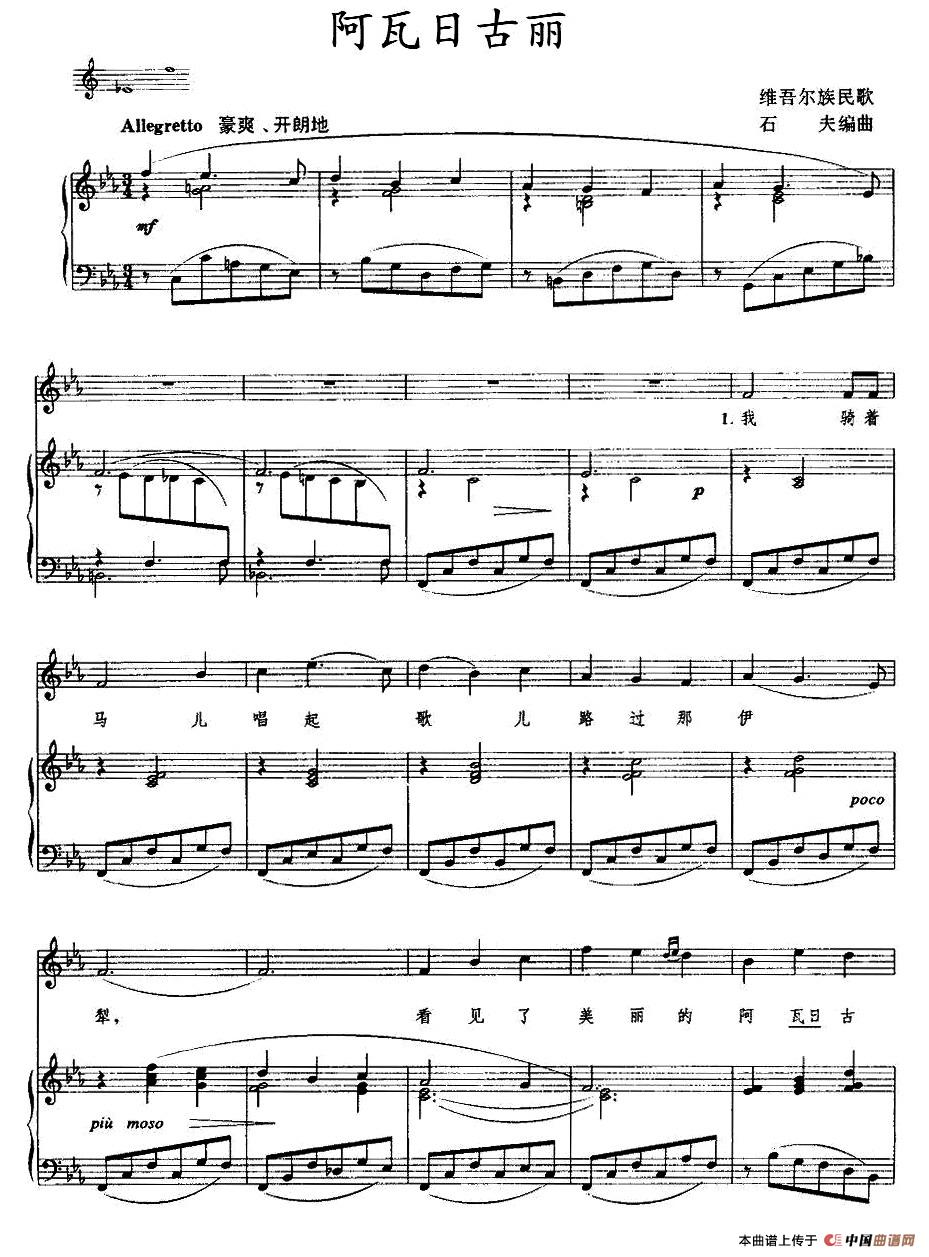 提示:在曲谱图片上单击右键,选择“图片另存为...”即可将曲谱保存到您的电脑中,打印时候可将图片插入到WORD中,调整合适大小打印即可。