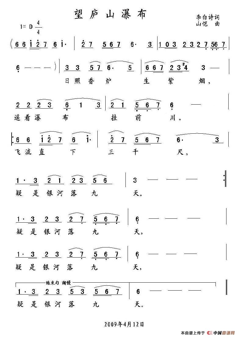 ![望庐山瀑布([唐]李白词 山恺曲)(1)_原文件名:1.jpg](/Public/Uploads/2013/07/08/51da22ea9d976.jpg)