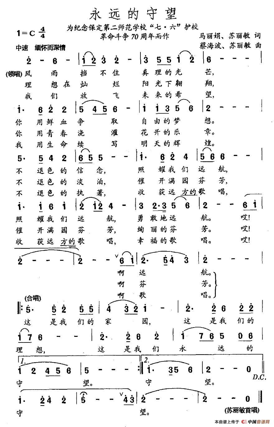 关于《永远的守望》曲谱的评论