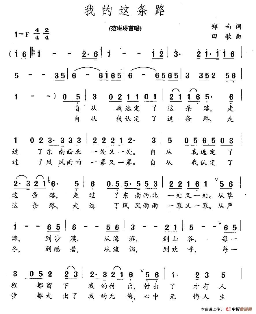 关于《我的这条路》曲谱的评论