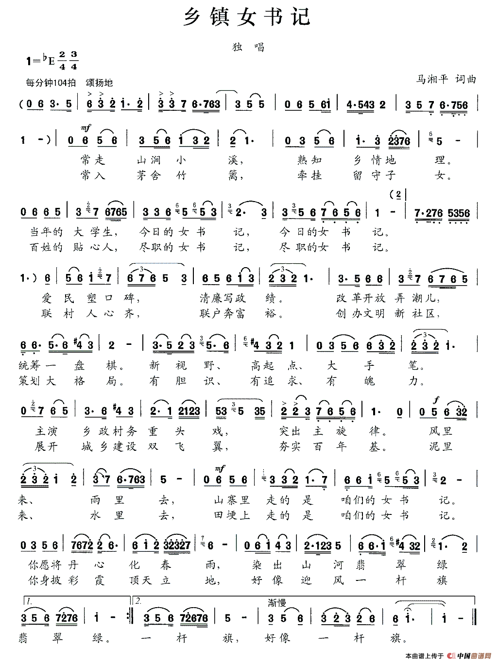 关于《乡镇女书记》曲谱的评论