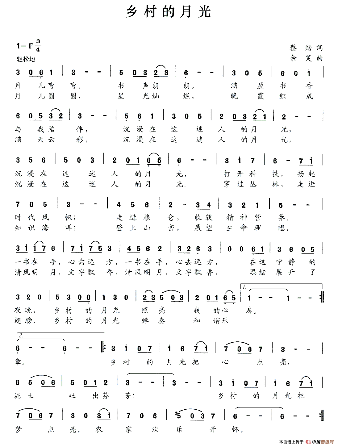 作词:蔡勋 作曲:余笑 来源:《美丽中国—新农财题材征歌获奖作品集》 上传:秋叶起舞