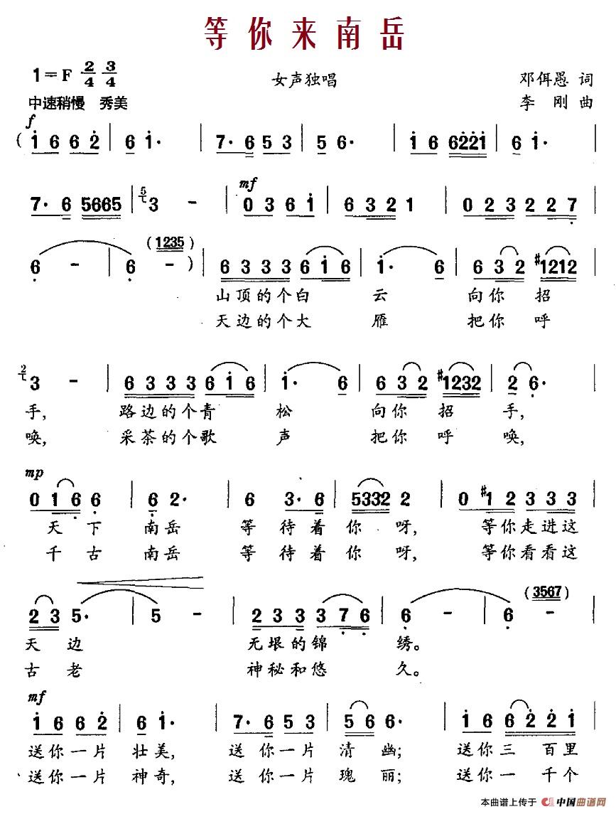 关于《等你来南岳》曲谱的评论
