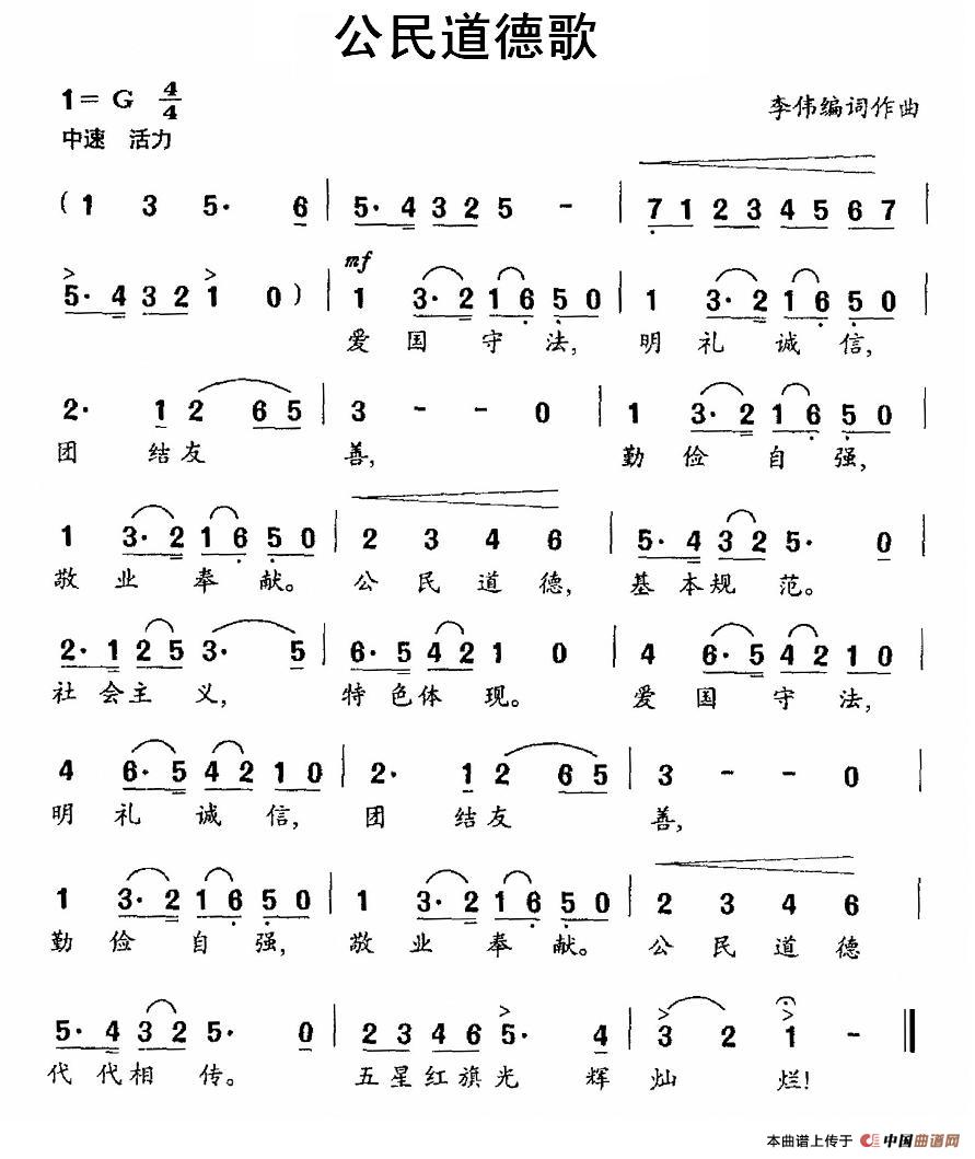 关于《公民道德歌》曲谱的评论