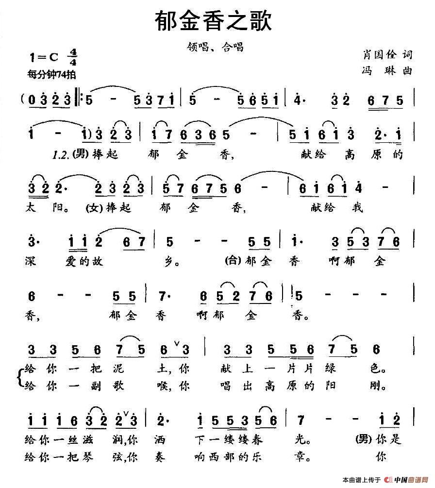 作词:冯琳 作曲:肖国全 来源:《中国曲谱网》 上传:秋叶起舞