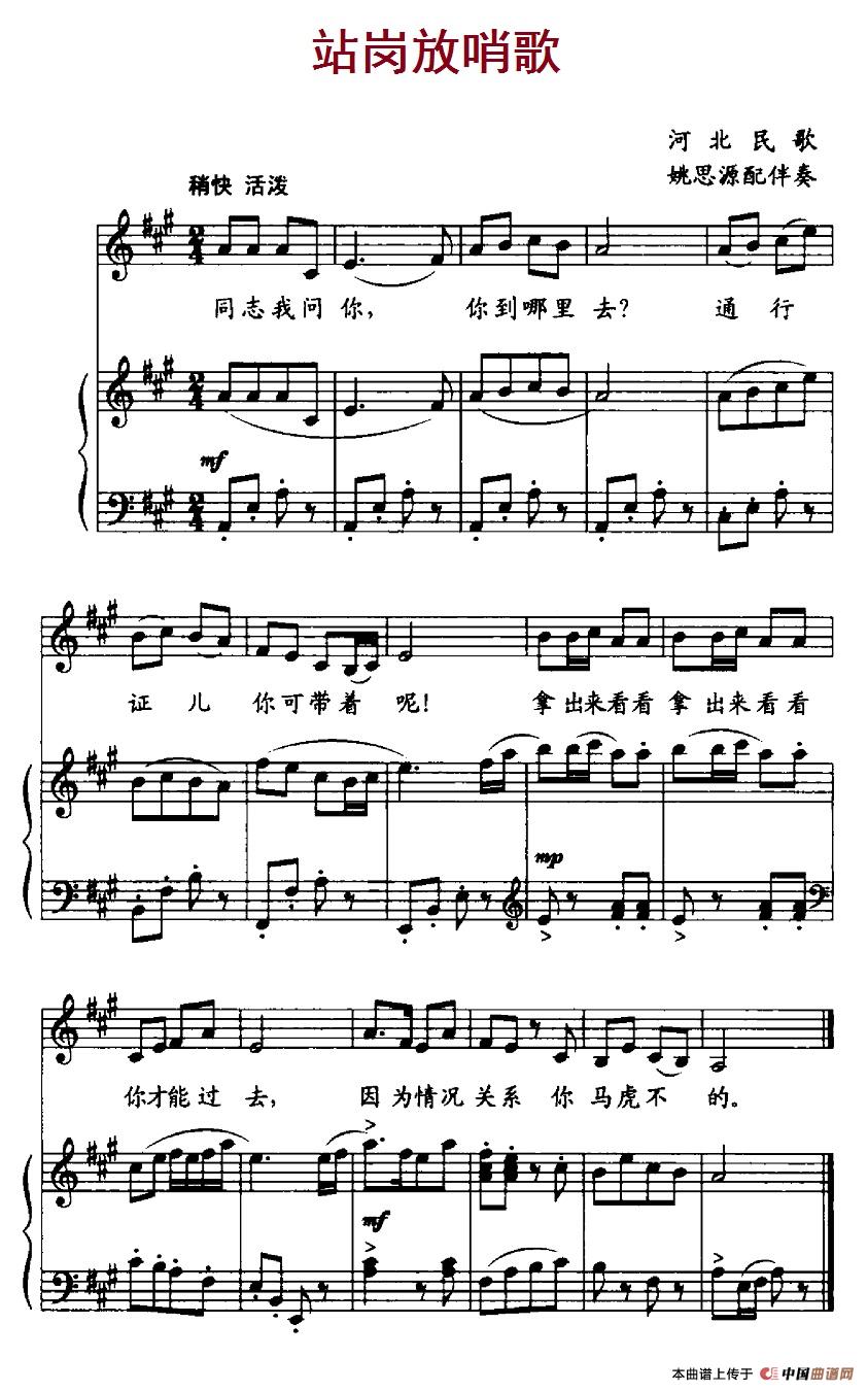站岗放哨歌(河北革命历史歌曲、正谱)
