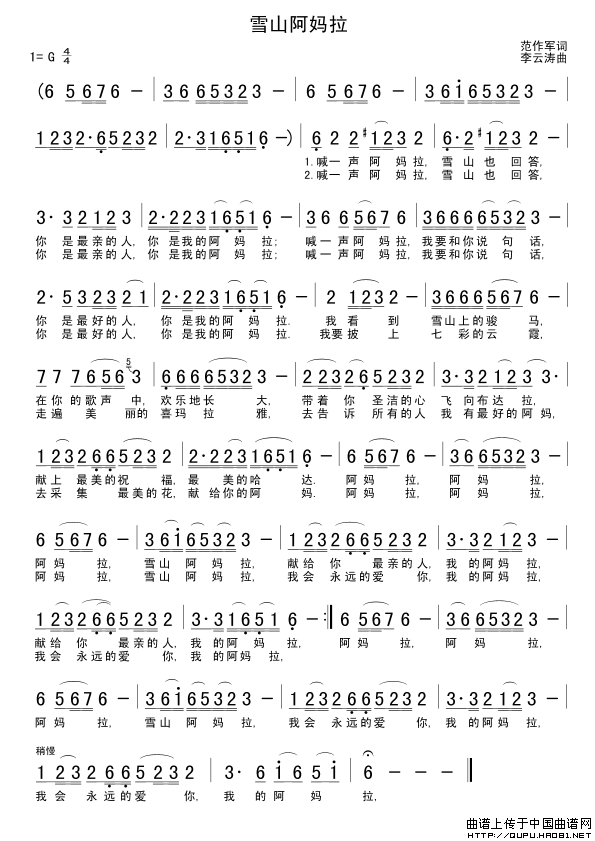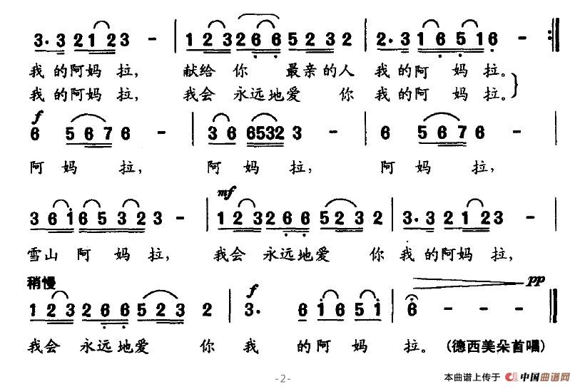 关于《雪山阿妈拉》曲谱的评论