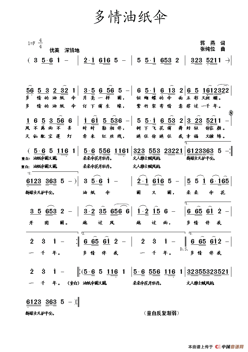 《多情油纸伞》文本歌词