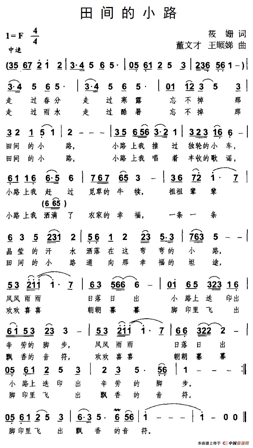 田间的小路(筱姗词 董文才、王顺娣曲)