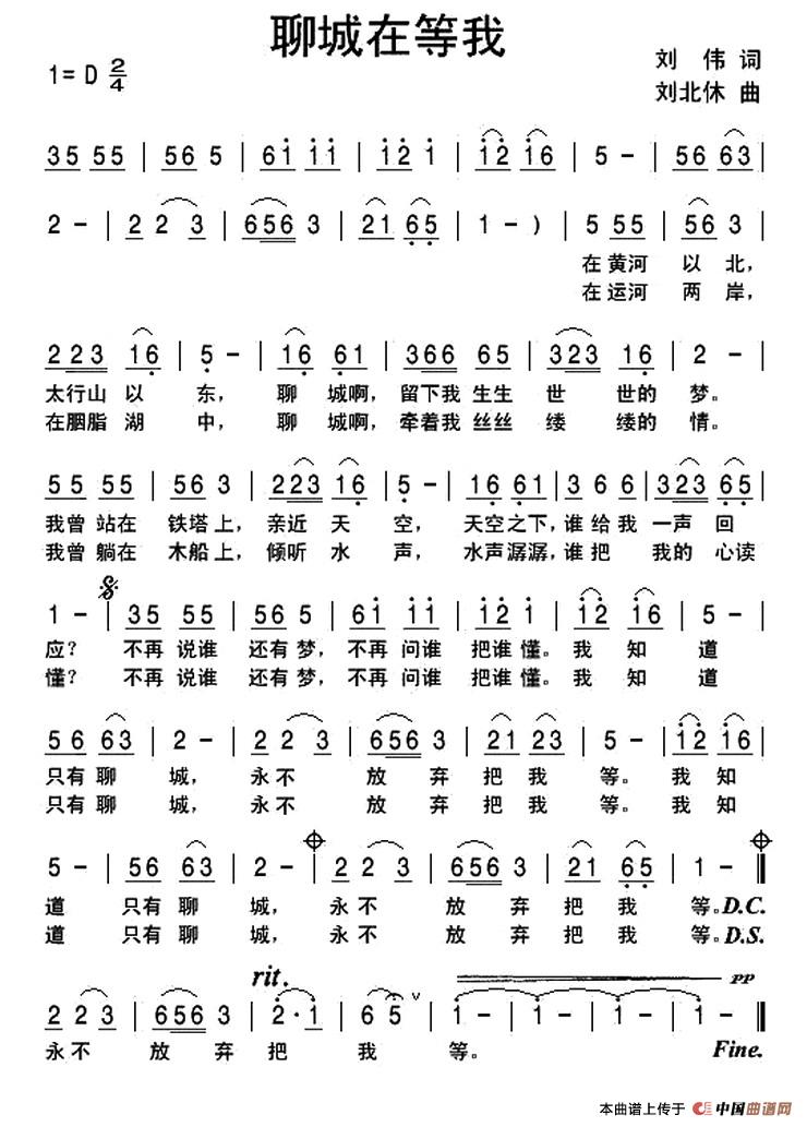 关于《聊城在等我》曲谱的评论
