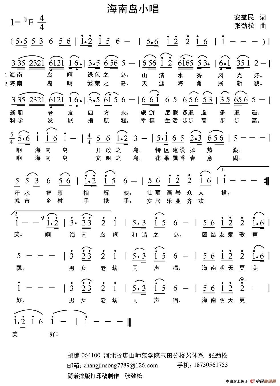 关于《海南岛小唱》曲谱的评论