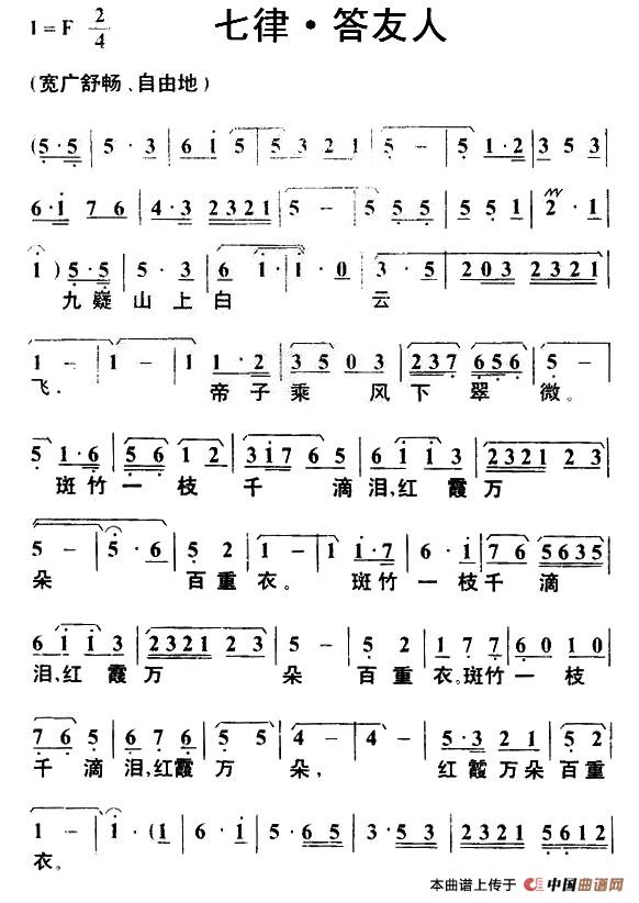 关于《七律·答友人》曲谱的评论