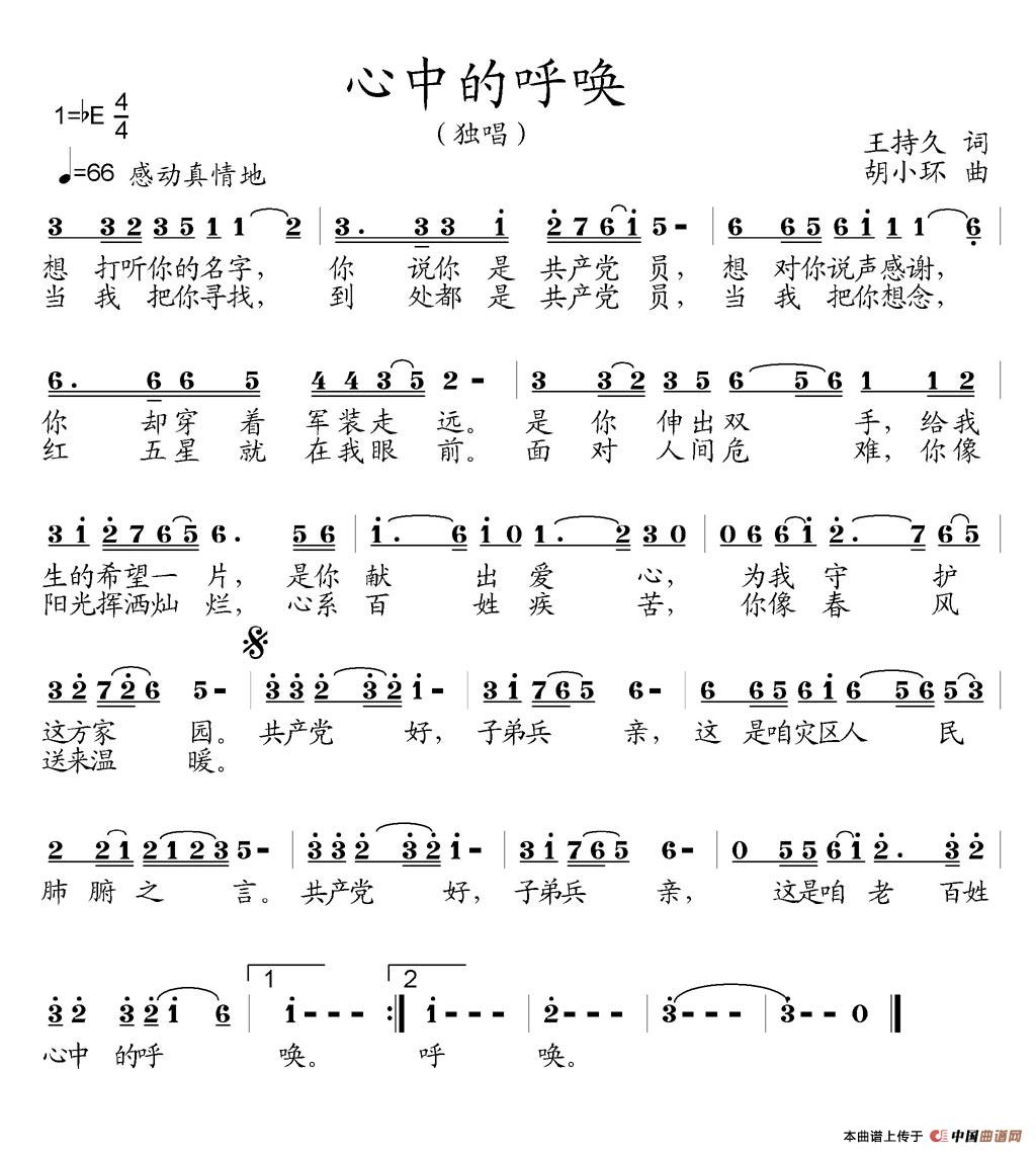 关于《心中的呼唤 》曲谱的评论