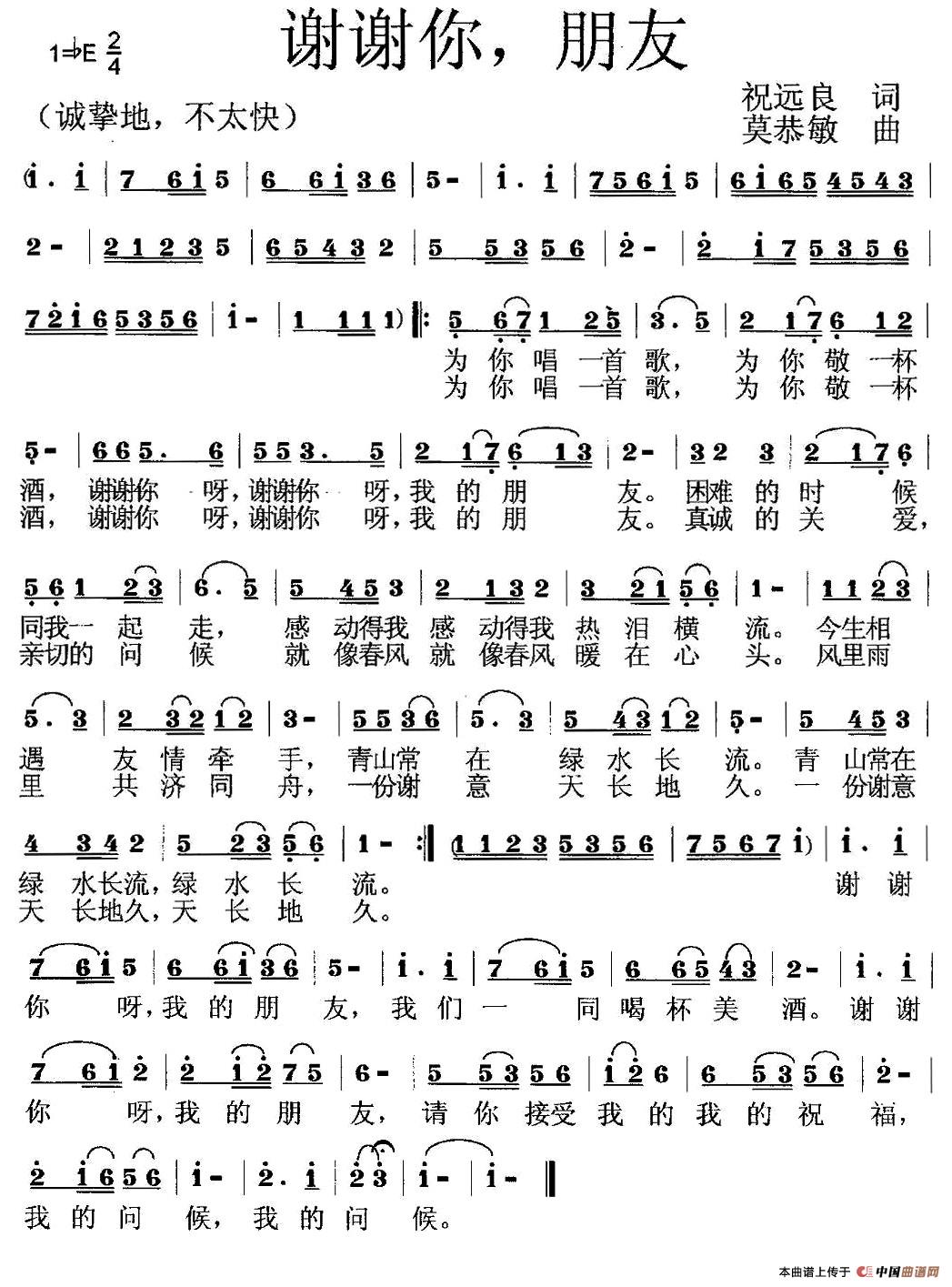 谢谢你,朋友(祝远良词 莫恭敏曲)
