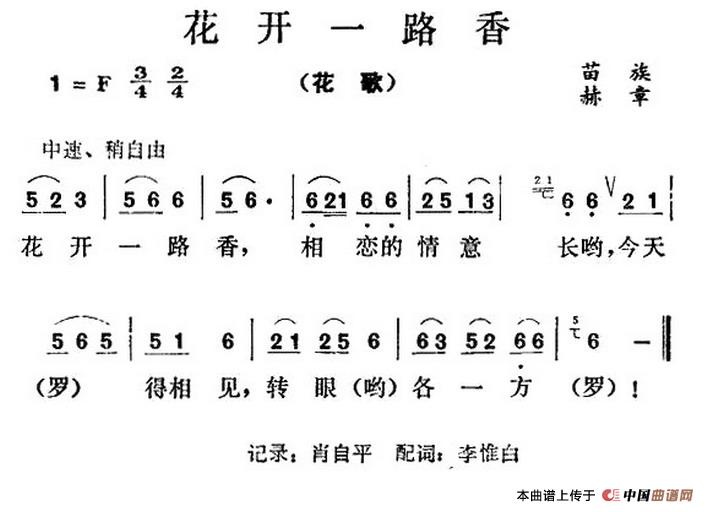 关于《花开一路香》曲谱的评论