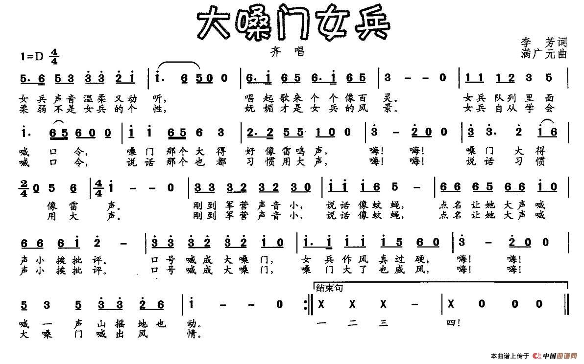 关于《大嗓门女兵》曲谱的评论
