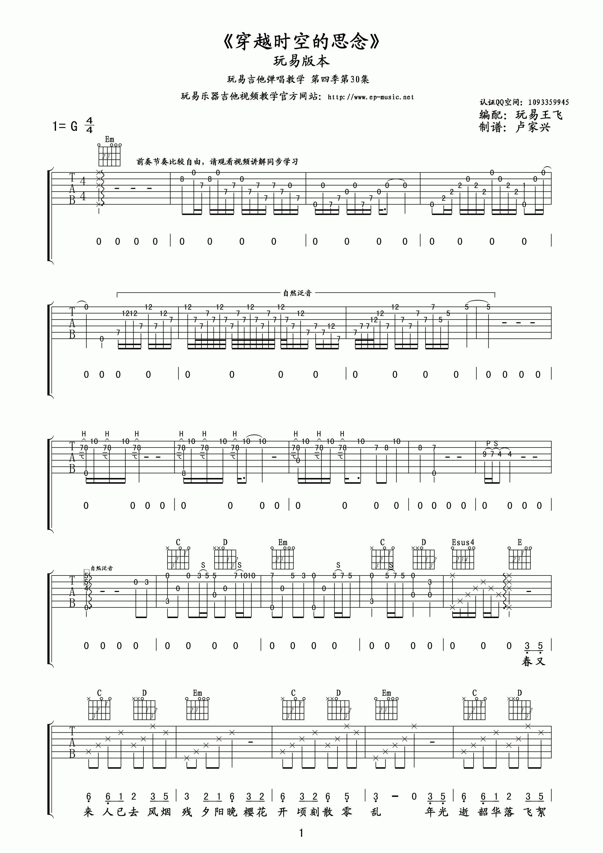曲谱名:《你就不要想起我》吉他谱C调简单版吉他谱