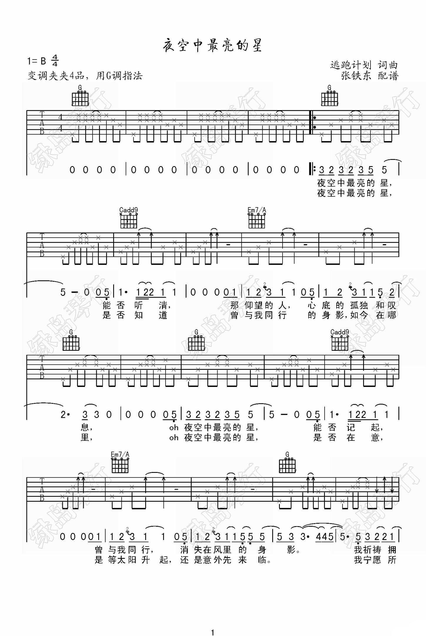 逃跑计划 夜空中最亮的星吉他谱 G调扫弦版