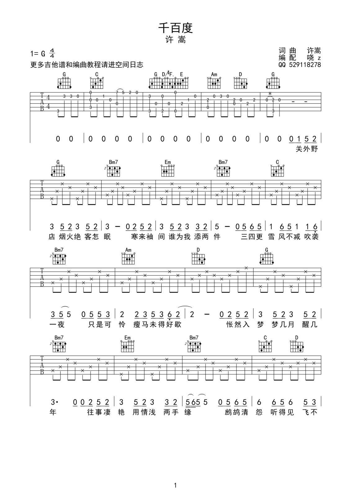 曲谱名:璀璨(吉他弹唱)吉他谱