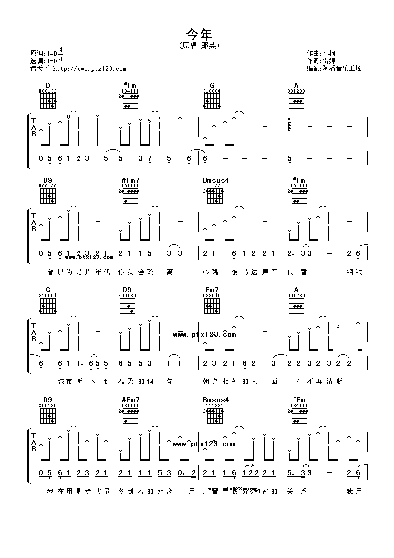 曲谱名:《你就不要想起我》吉他谱C调简单版吉他谱