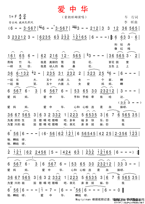 作曲:李 昕 作词:车 行 演唱:索朗旺姆