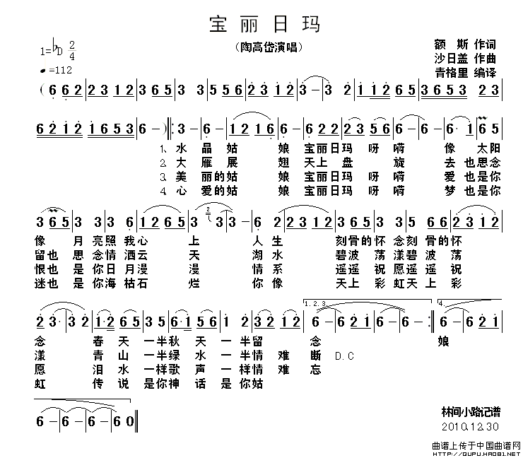 提示:在曲谱图片上单击右键,选择“图片另存为...”即可将曲谱保存到您的电脑中,打印时候可将图片插入到WORD中,调整合适大小打印即可。