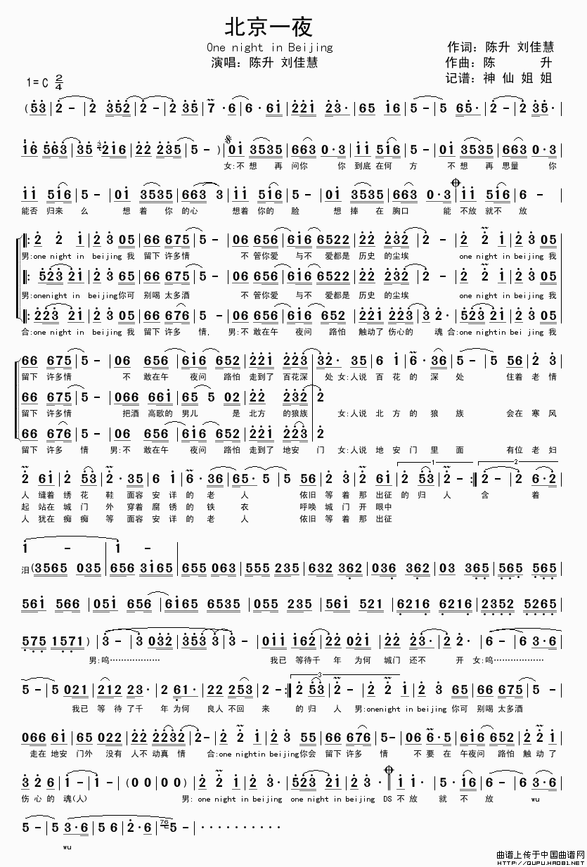 演唱(奏):陈升、刘佳慧 格式:简谱 来源:神仙姐姐记谱 上传:神仙姐姐