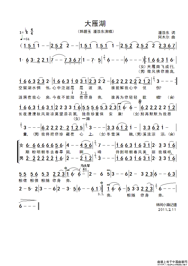 关于《大雁湖》曲谱的评论