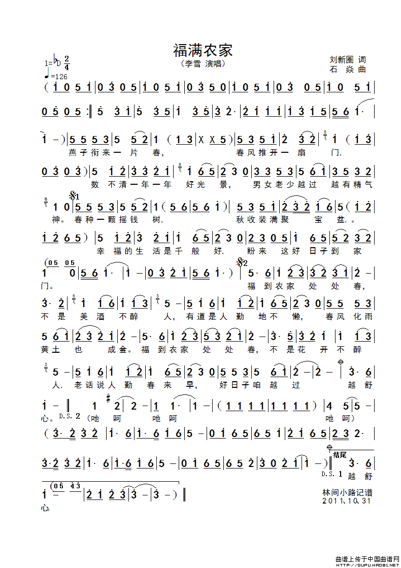 提示:在曲谱图片上单击右键,选择“图片另存为...”即可将曲谱保存到您的电脑中,打印时候可将图片插入到WORD中,调整合适大小打印即可。