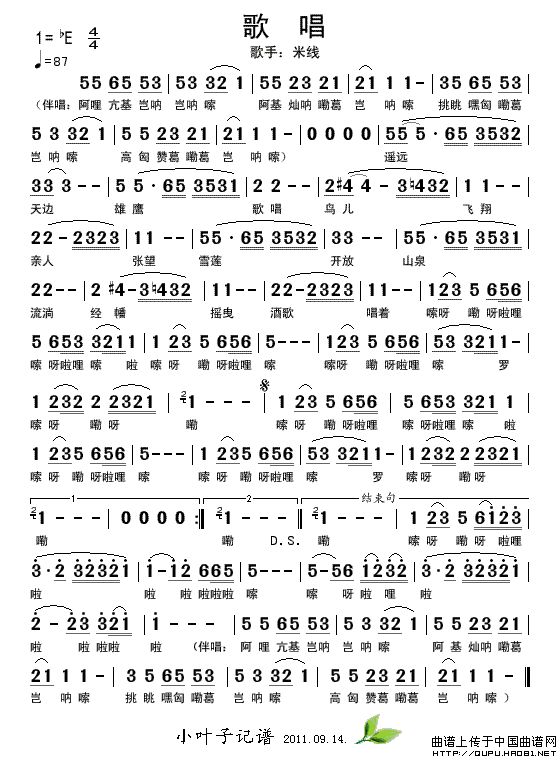 关于《歌唱》曲谱的评论