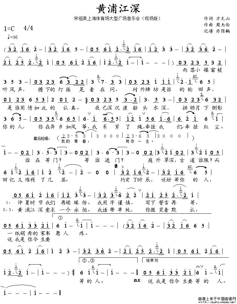 关于《黄浦江深》曲谱的评论