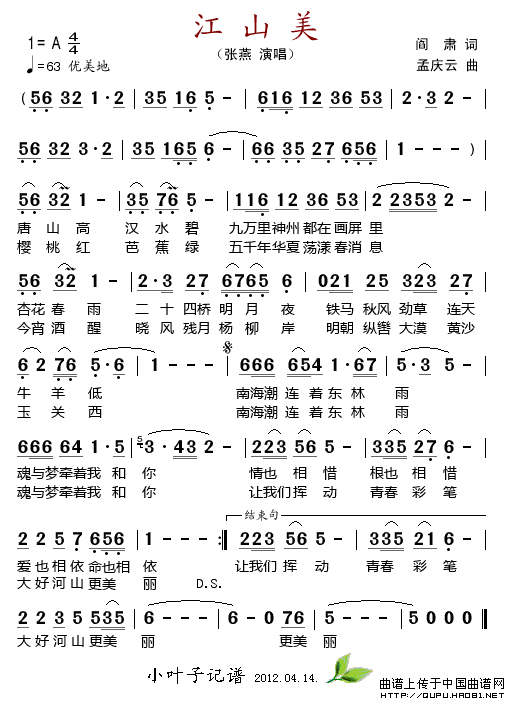 关于《江山美》曲谱的评论