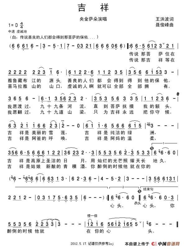 吉祥(王洪波词 聂俊峰曲)(1)_原文件名:吉祥(聂俊峰).jpg