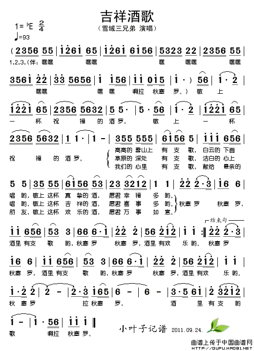 演唱(奏):雪域三兄弟 格式:简谱 来源:小叶子记谱 上传:~金沙浪~