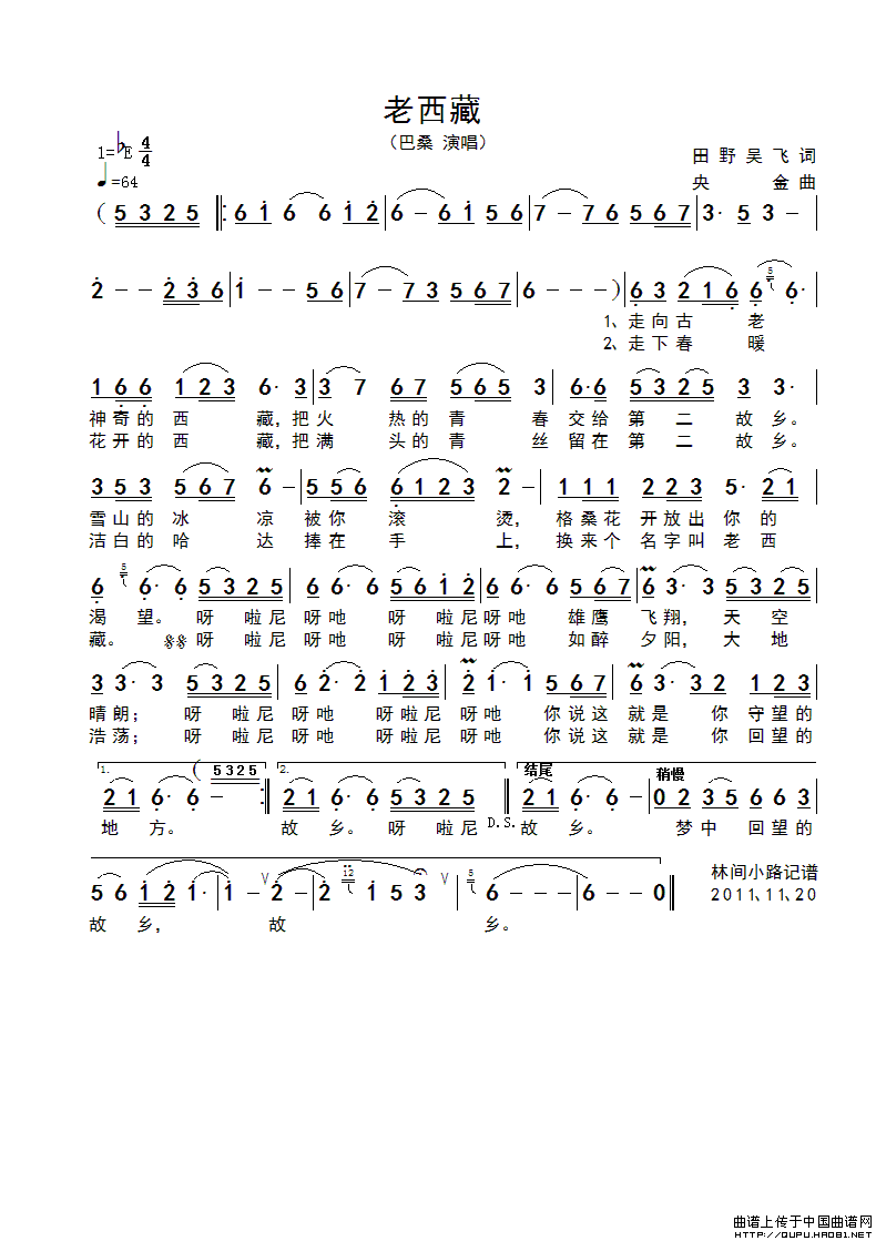 提示:在曲谱图片上单击右键,选择“图片另存为...”即可将曲谱保存到您的电脑中,打印时候可将图片插入到WORD中,调整合适大小打印即可。