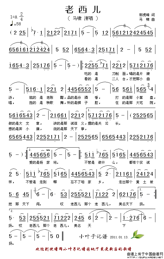 关于《老西儿》曲谱的评论