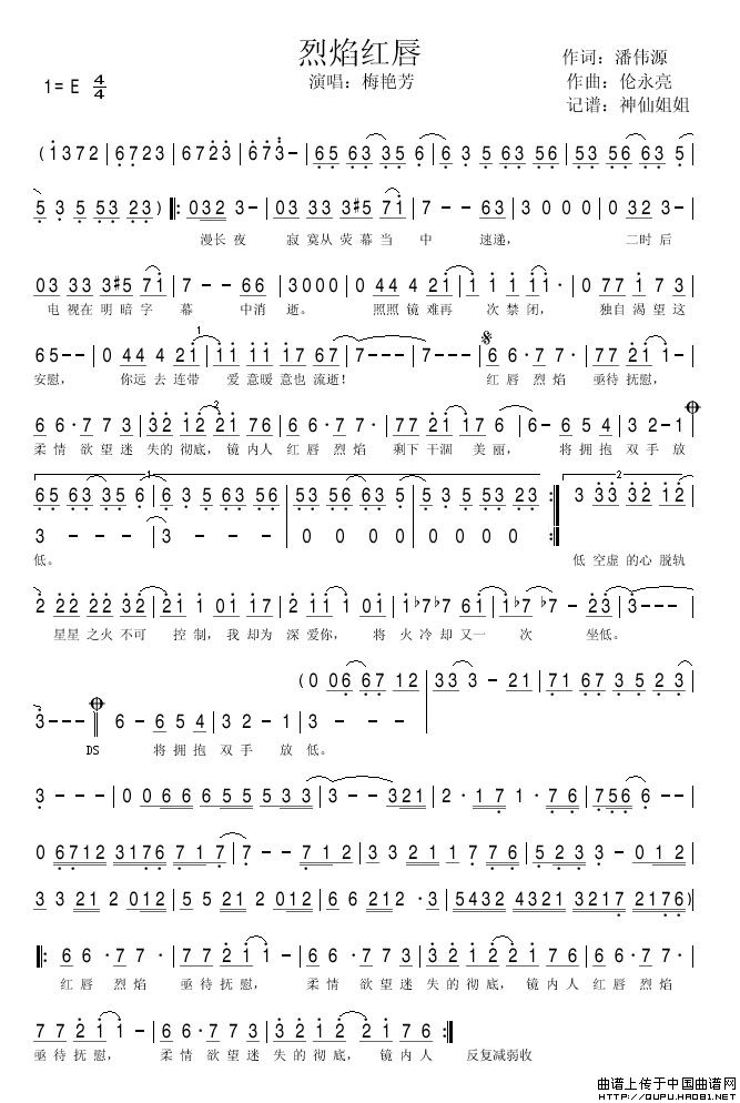 关于《烈焰红唇》曲谱的评论