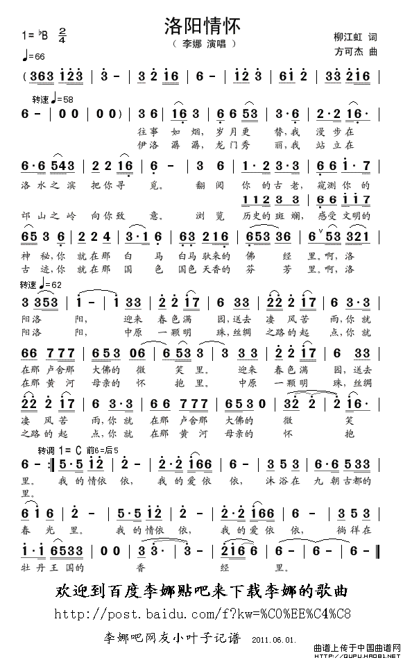 关于《洛阳情怀》曲谱的评论