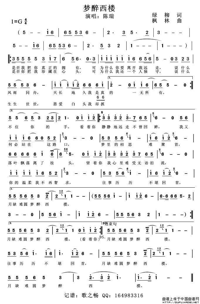 关于《梦醉西楼》曲谱的评论