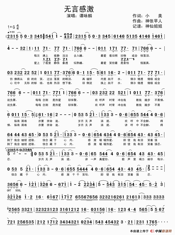 作词:小美   作曲:神张早人   演唱(奏):谭咏麟   格式:简谱   来源:神仙姐姐记谱   上传:神仙姐姐   日期:2012-06-19   浏览次数: