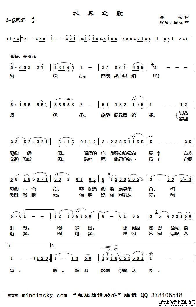 关于《牡丹之歌》曲谱的评论